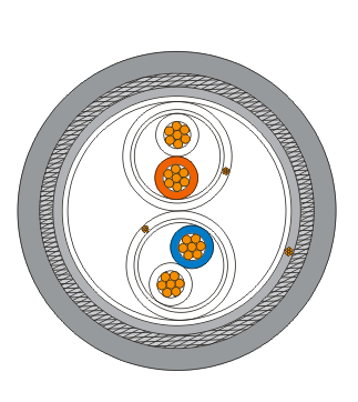 鎧裝雙屏蔽型電纜,可用于鼠害嚴重以及有防雷防爆要求的場所,彎曲半徑>15D.